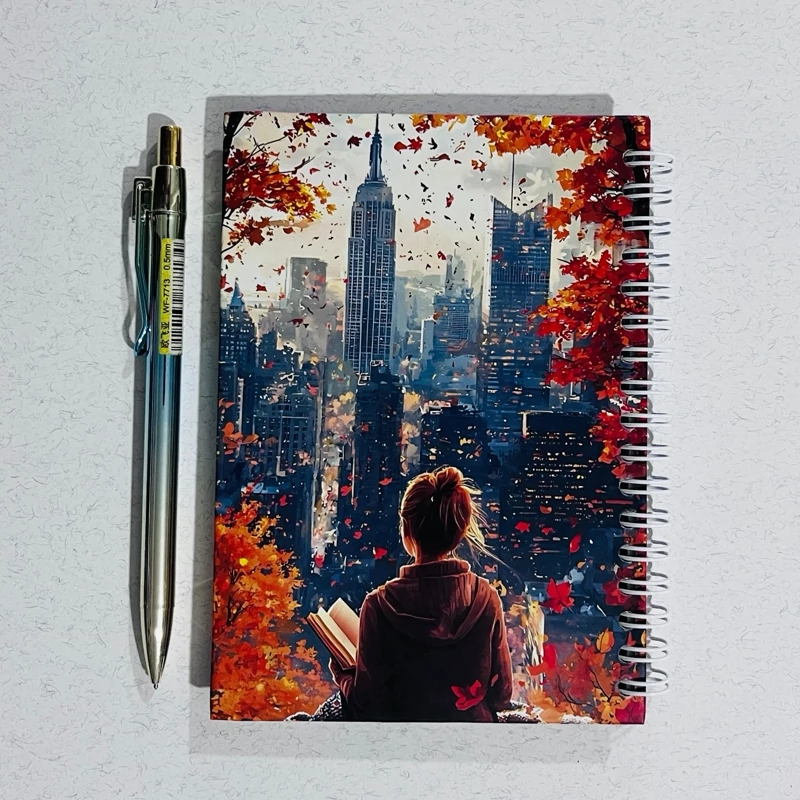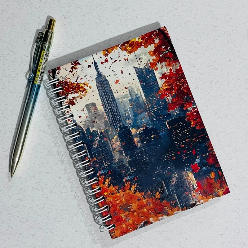 دفترچه پاییزی دخترونه و فانتزی سایز 15*11 60 برگ خط دار سفید صحافی جلد سخت فنری روکش سلفون