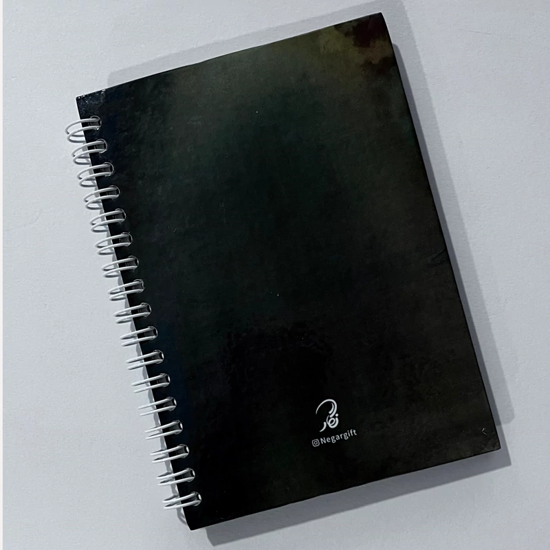 دفترچه مداحی طرح تمثال امیرالمومنین (ع) سایز 15*11 60 برگ خط دار سفید صحافی جلد سخت فنری روکش سلفون