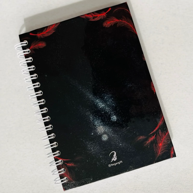 دفترچه با طرح حضرت علی اکبر (ع) سایز 15*11 (A6) 60 برگ خط دار سفید ـ کاغذ 80 گرم صحافی جلد سخت فنری روکش سلفون