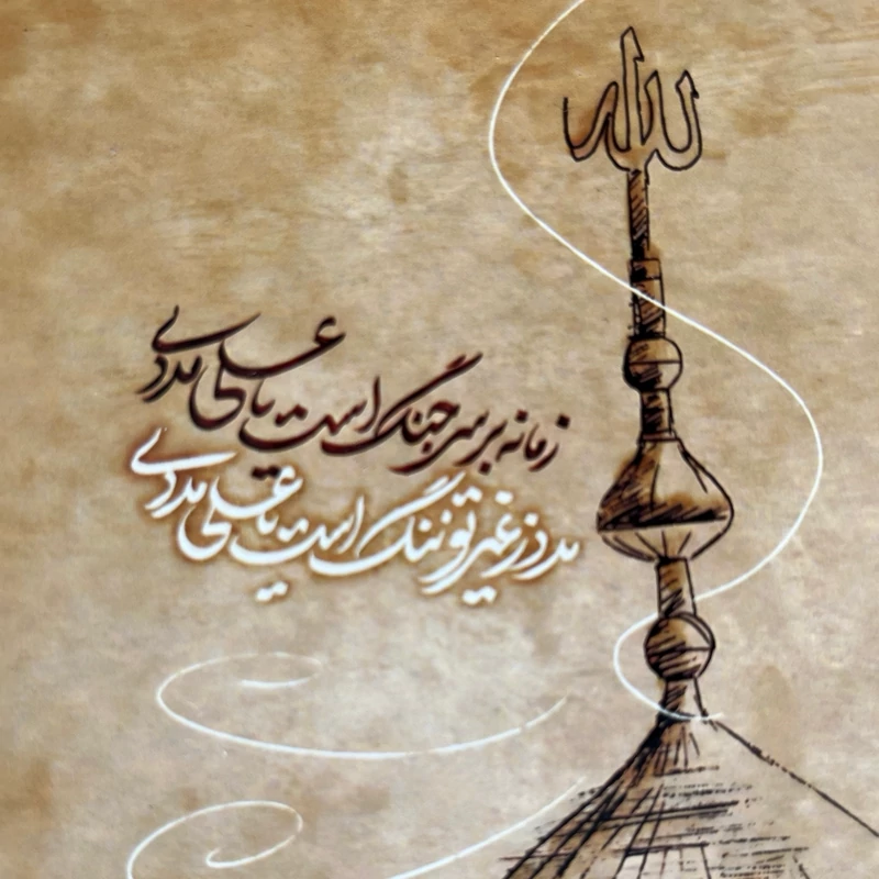 دفترچه با طرح زمانه بر سر جنگ است یا علی مددی (ع) سایز 15*11 (A6) 60 برگ خط دار سفید ـ کاغذ 80 گرم صحافی جلد سخت فنری روکش سلفون